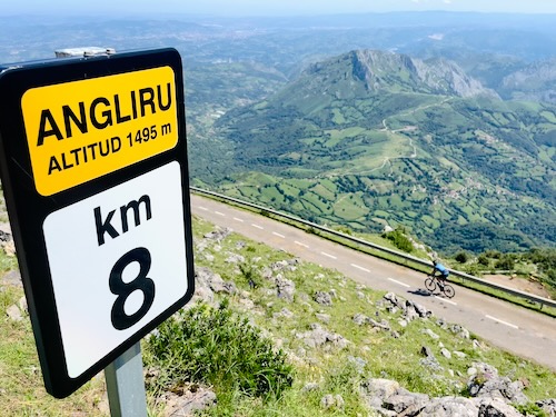 Zuidelijk van Oviedo ligt een bergrug met aan één kant de Angliru, en aan de ander kant de Gamoniteiro. Een uitdaging om fietsend naar boven te komen, zelfs voor een prof. De Angliru is heftig maar ook bijzonder mooi.